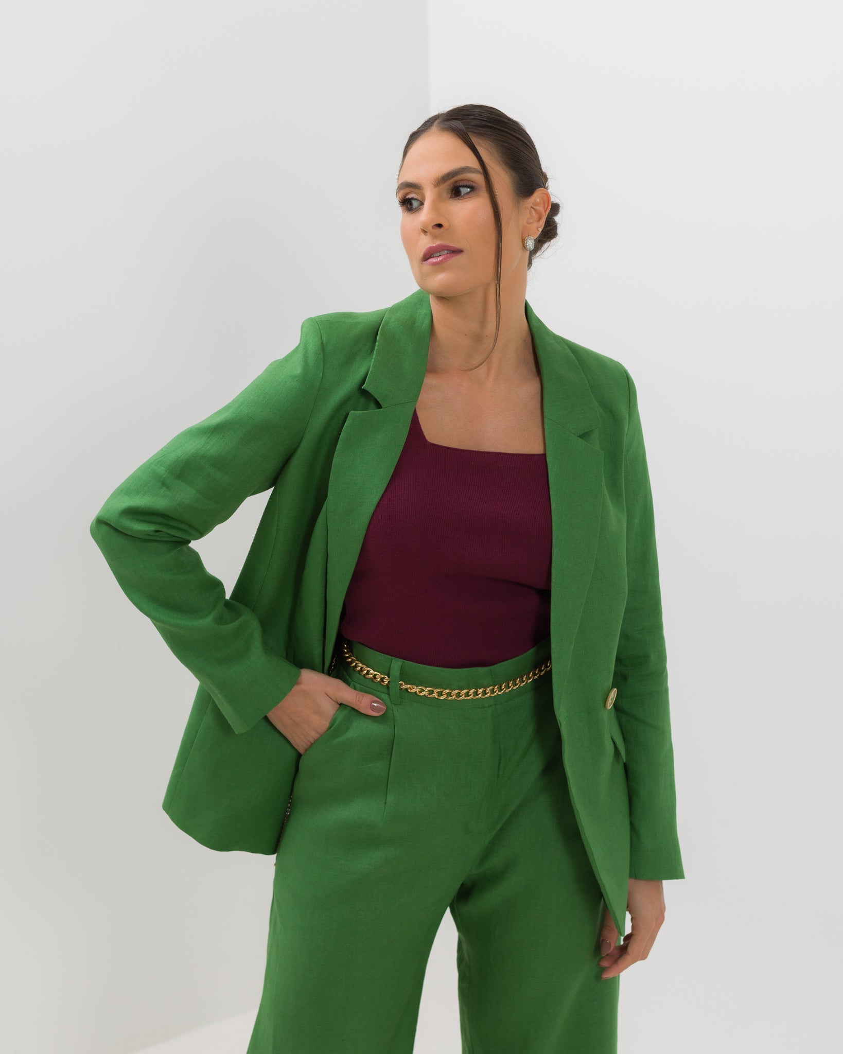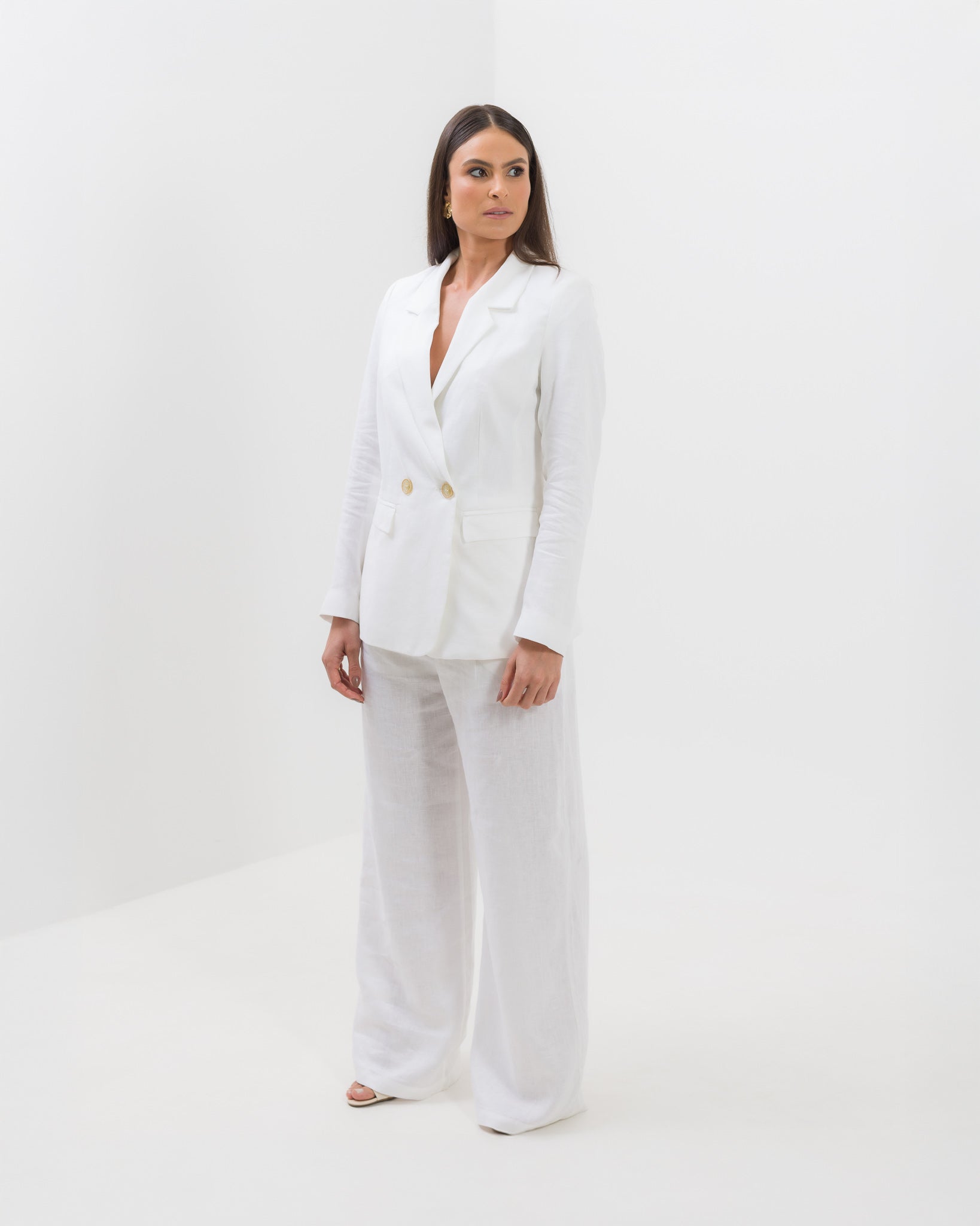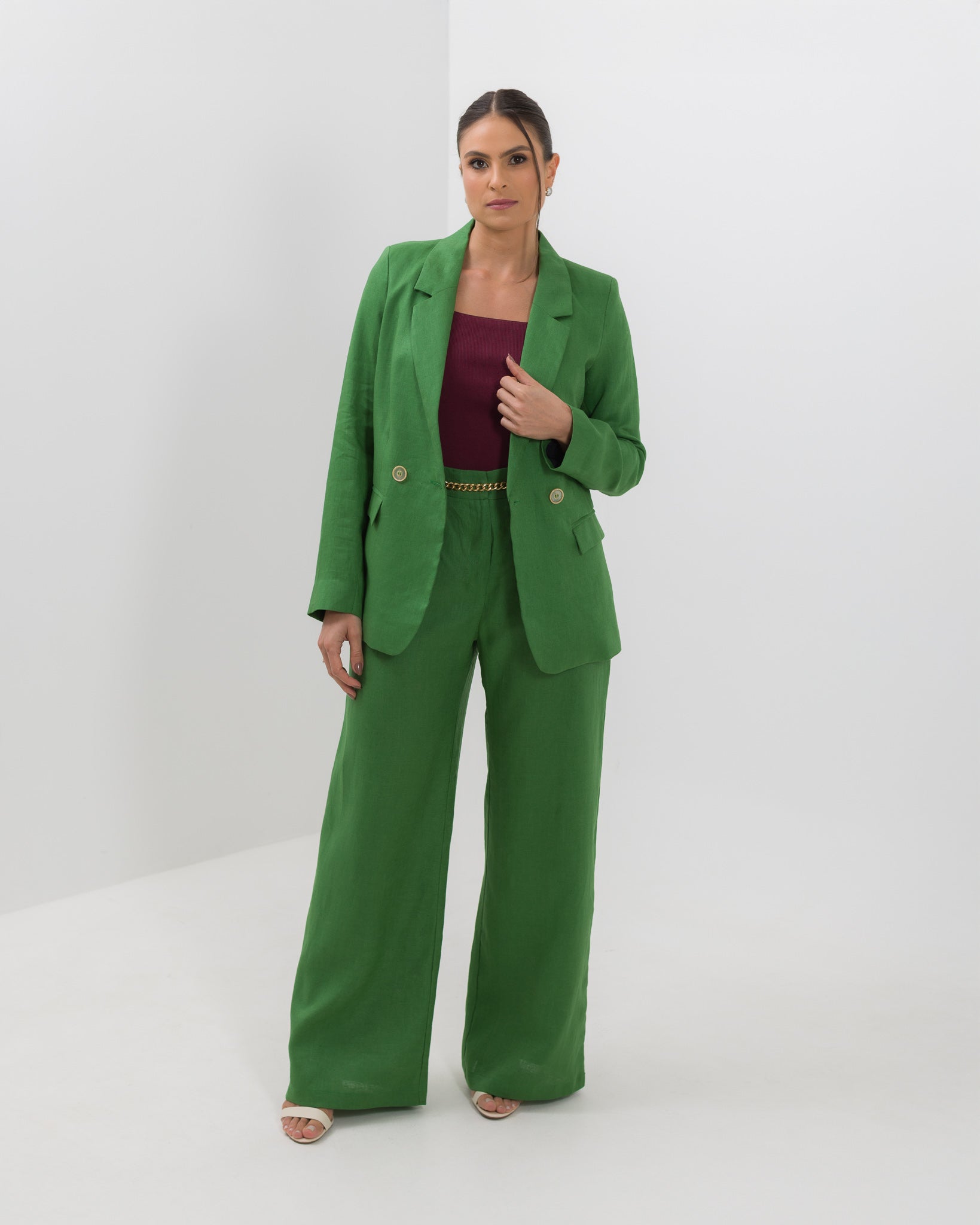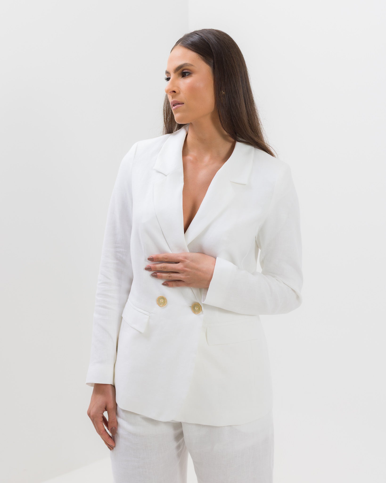 O Blazer transpassado 100% Linho - Helena é uma opção elegante e sofisticada para o seu guarda-roupa. Confeccionado em linho 100% natural, proporciona conforto e leveza. O corte transpassado traz um toque moderno e versátil, perfeito para looks de trabalho ou ocasiões especiais.