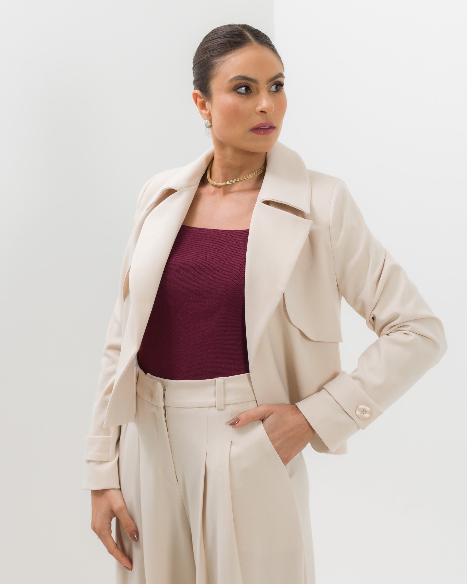Este elegante casaco Trench de alfaiataria é perfeito para qualquer ocasião. Feito com materiais de alta qualidade, seu design clássico e atemporal oferece conforto e estilo. Ideal para dias frios ou para um toque sofisticado ao seu look, o Casaco Trench Alfaiataria Aurora é uma escolha elegante e versátil.